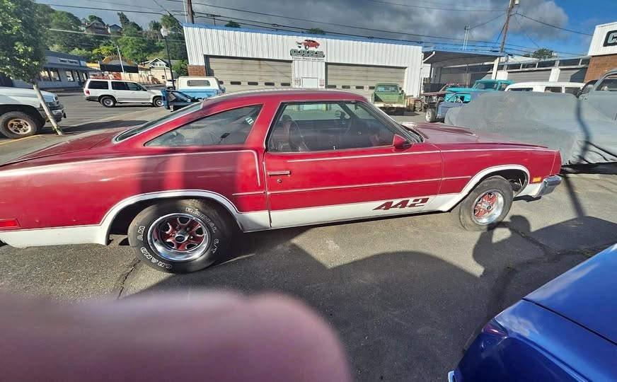 Oldsmobile’s entry into the 1960s mid-size muscle car market race was the 442 (aka 4-4-2). This acronym is usually considered to stand for “4-barrel carburetor, 4-speed manual transmission, and 2-exhausts”. By the mid-1970s, the car was more about image rather than performance, thanks to rising insurance premiums and lower horsepower due to detuning. This 1976 442 is said to have been sidelined since 1992, but runs and doesn’t look bad. From The Dalles in Oregon, this 49-year-old “muscle car” is available here on Facebook Marketplace for $6,000.