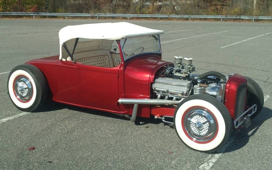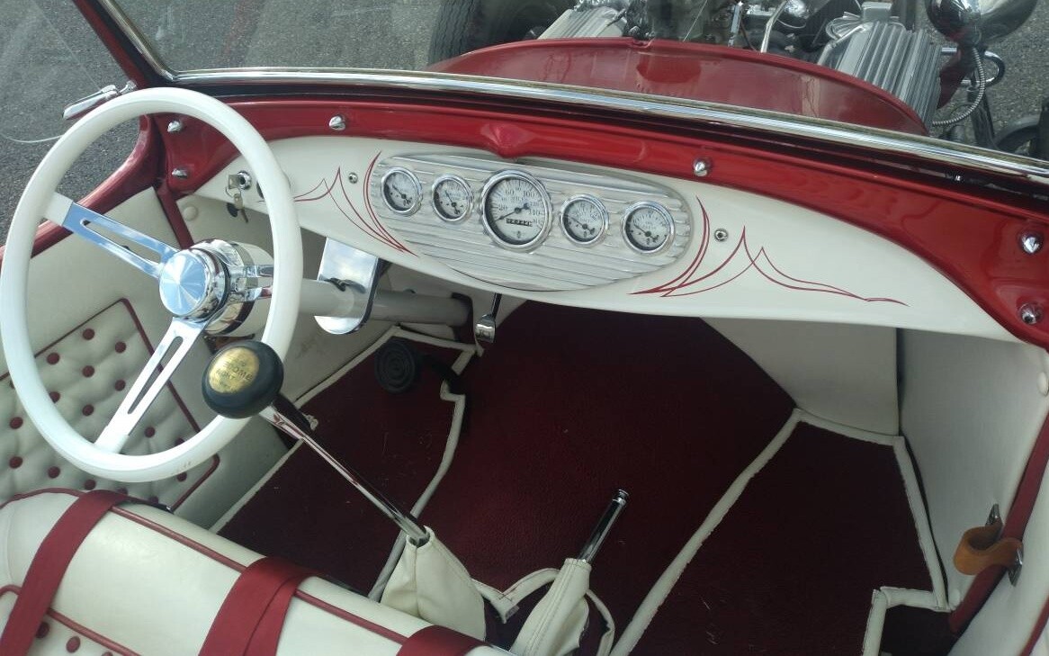 Wherever she is, the car looks fantastic, and whoever put her together deserves a good old tip of the hat. The Model A is of the Roadster style and has been given the traditional Hot Rod treatment, including real Candy Apple Red paint, a color that’s really hard to beat for just about any rod application. The original top is said to have been fixed and chopped 2 inches, with the windshield raked the same amount. All this combined with a 6-inch channeled body has given the Ford a great stance, and the seller says the car is a real head-turner, a statement I have no trouble believing.