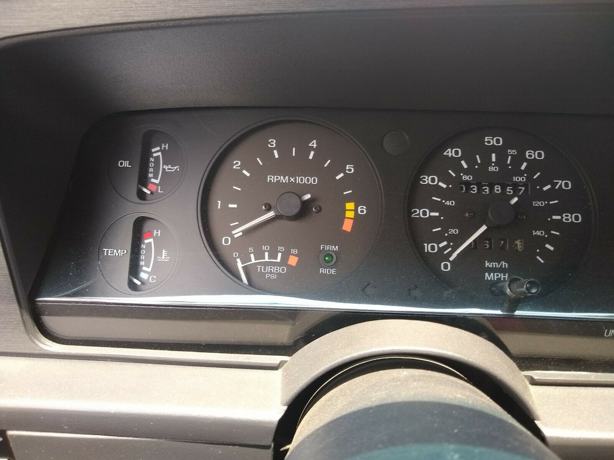 The speedo is either rewound or flipped over 100k. The wear that the piping on the seat has would seem excessive on a 30k mile car. I can make them out but if the rubber on the pedals are worn smooth it has a 100k + miles. To bad these weren’t intercooled 302’s, they would run pretty well.