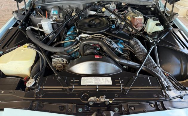 The engine was also one of the last of the “big” Cadillac engines, a 180-horsepower, 425-cubic-inch Cadillac V8. The engine compartment looks almost new, and the seller includes a 17-minute video showing the condition and the features: Everything seems to work, including the radio, power antenna, and climate control system. The 425 was hooked to a Turbo-Hydramatic 400 and a set of 2.56:1 gears out back: Those are tall for certain, but it was the ’70s after all, and the 425 had the torque to whisk the Caddy up to a quiet expressway speed.