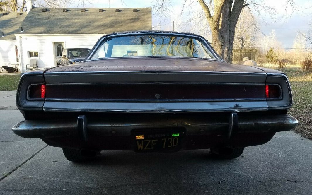 This Plymouth comes with a story (most cars do if they last long enough) as it was originally ordered by a U.S. soldier stationed in Germany. It never left the states, however, remaining in California until the current owner purchased it in 2014. The exterior is a little rough, mostly as a result of the faded paint, ripped vinyl top covering, crumpled front passenger fender, bent-up rear bumper, and dented trunk lid trim. The seller claims, “100 percent original paint and sheet metal which is almost completely rust free! Car was ordered in the beautiful RR1 Burgundy Metallic. Car retains all of its original, 50 plus years of dings, dents, bumps, and bruises“. There are lots of 100 percents bounced around in the listing, the play is that this Plymouth is a solid specimen. The aluminum slotted wheels, which I would equate with Ansen Sprints, are 1970’s period correct.