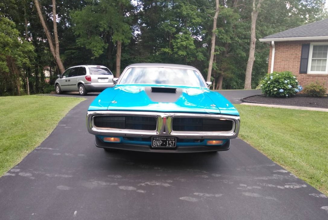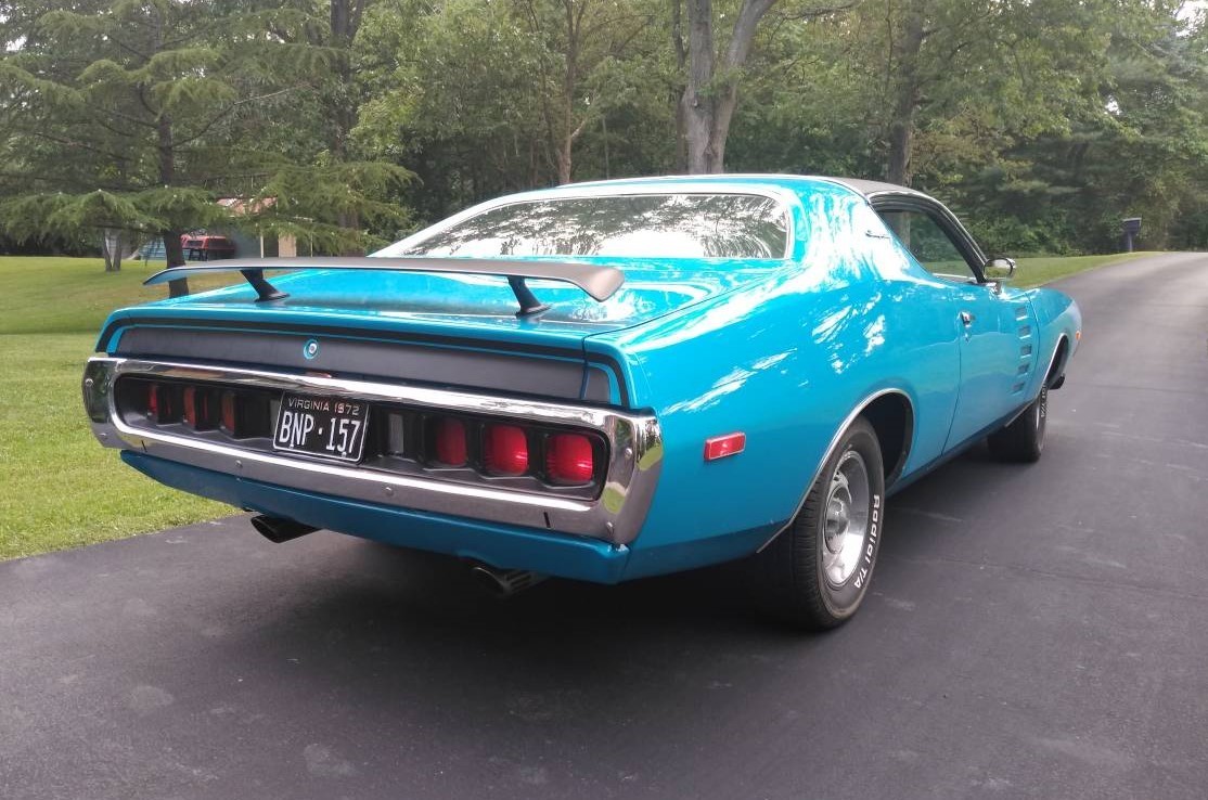 One of the most distinctive features on the seller’s car is the Air Grabber Hood that came with the A57 Rallye package. The car is finished in TB3 Super Blue, which was about as close to Petty Blue as you could get (the official color of NASCAR driver Richard Petty). The paint and exterior trim on this car look exceptional, including the 1972-only louvers in the doors. The seller doesn’t say if this is all original, so we assume a professional paint job was reapplied. There is no appearance of rust anywhere even though these Chargers have a reputation for corroding quickly under less-than-ideal circumstances.