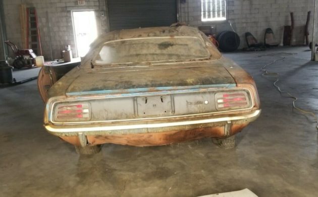 Ouch – thank you, vinyl roof. Few dealer add-ons have caused more strife and unnecessary damage than a silly vinyl roof skin. The damage is clear in this case, with holes marking the entire perimeter of the rear glass. I can’t quite tell what the damage is like in the C-pillar, but it looks somewhat compromised from here. I’m not sure if the seller is exaggerating that the entire roof needs to be torn off and re-done, or if it can be repaired in sections, but bodywork will be a significant aspect of the forthcoming restoration. If bidding is any indication, no Mopar enthusiasts are seeing anything too overwhelming here to repair, at least not when compared to the potential value of a genuine AAR ‘Cuda. Would you take this restoration on at the current bid price?