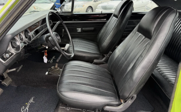 Most of the description provided is dealer marketing-speak, but it does seem to aptly describe the condition of the Swinger as it stands today. The quality seems good enough that you could fly in today and drive it home tomorrow. While the car isn’t numbers-matching mechanically, the body panels are said to jive. The black bucket seat interior looks outstanding. If the price is right, this could be a great addition to the local Cars & Coffee calendar.