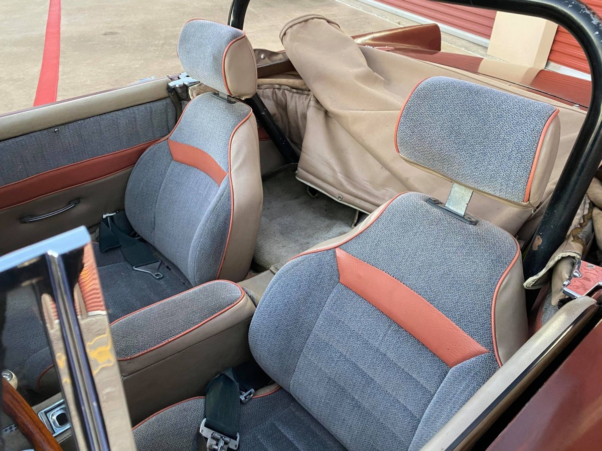 This photo demonstrates the most profound changes that have been made to the Tiger’s interior. The seats aren’t original, but they and the door trims are upholstered in matching material. The condition is quite good, and if the buyer is not fixated on complete originality, they could be left untouched. The seats would almost certainly be more comfortable and supportive than the original low-back buckets, so that is a point that is worth considering.