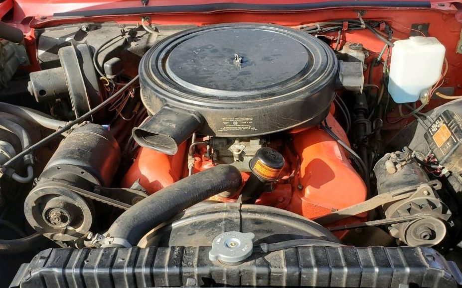 Under the hood is a 348 CI “W” head, V8 engine that was available in horsepower variants of 305, 340, or 350 HP. The 350 HP version had three two-barrel Rochester carburetors and this engine has what looks like a Rochester “dual-jet” carburetor upfront, equipped with a multiple carburetor fuel distribution line, so I’m suggesting it’s that top engine option. Additionally, the seller does refer to it as a “Super Turbo-Thrust Special” which is the correct designation for that motor. The engine is listed as a matching number item, and while there is no word as to how it actually operates and drives, it should still be lively with only 70K miles on its clock. As previously stated, the engine is connected to a four-speed manual transmission.