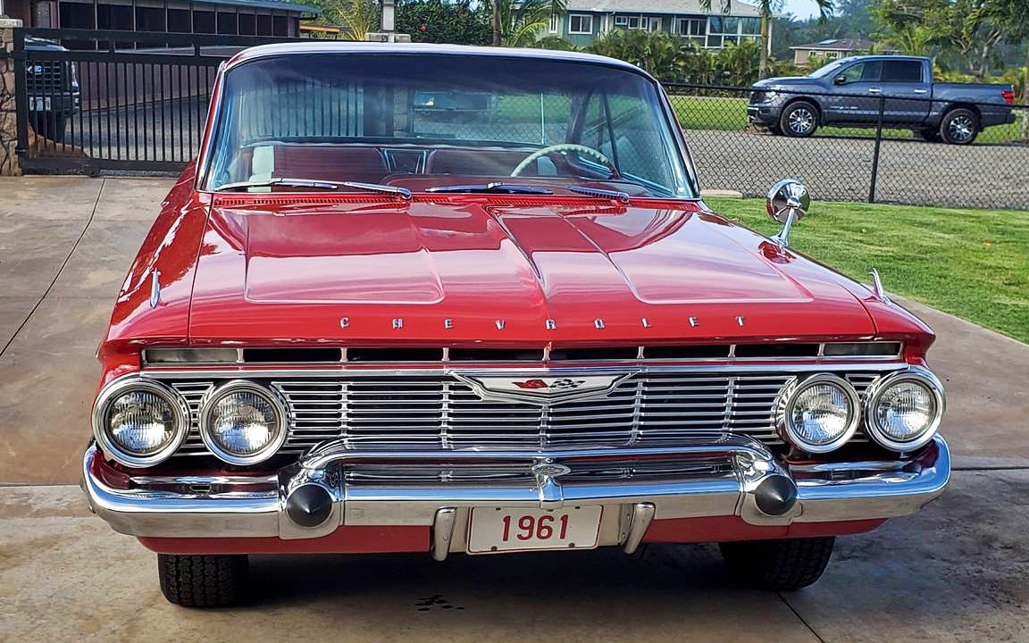 Oh my! Had a ’61 back in my college days. Blue convertible with 283/PG. Not quick but would run 80 all day. I had tickets to prove that. Took my bride on our wedding night and had to clean rice out of everywhere the next day. Thanks friends. Best looking Chevy of that era.