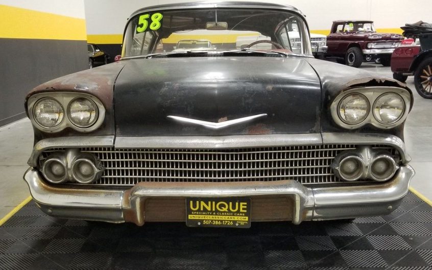 I have liked the ’58 since seeing ” American Graffiti ” a lifetime ago. The Tri-5’s are great, but the ’58 was a nice change of pace. There is just too much rust everywhere, maybe someone with the time, patience, and lots of money can save it.