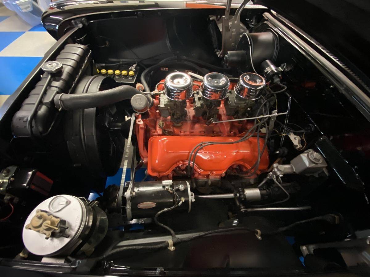 What a beautiful car! I love it with or without PB and PS. Many put down the W-engines, the small block and porcupine motors being more popular and having more performance potential, but I love the 348/409 as well as the cars from the years they were available. The clear plastic seat covers were ubiquitous then, despite being true uncomfortable. If you want a true bed-of-nails experience your could see if you could track down a set with the waffle-patterned plastic. The epitome of mid- to late-fifties skin maltreatment.