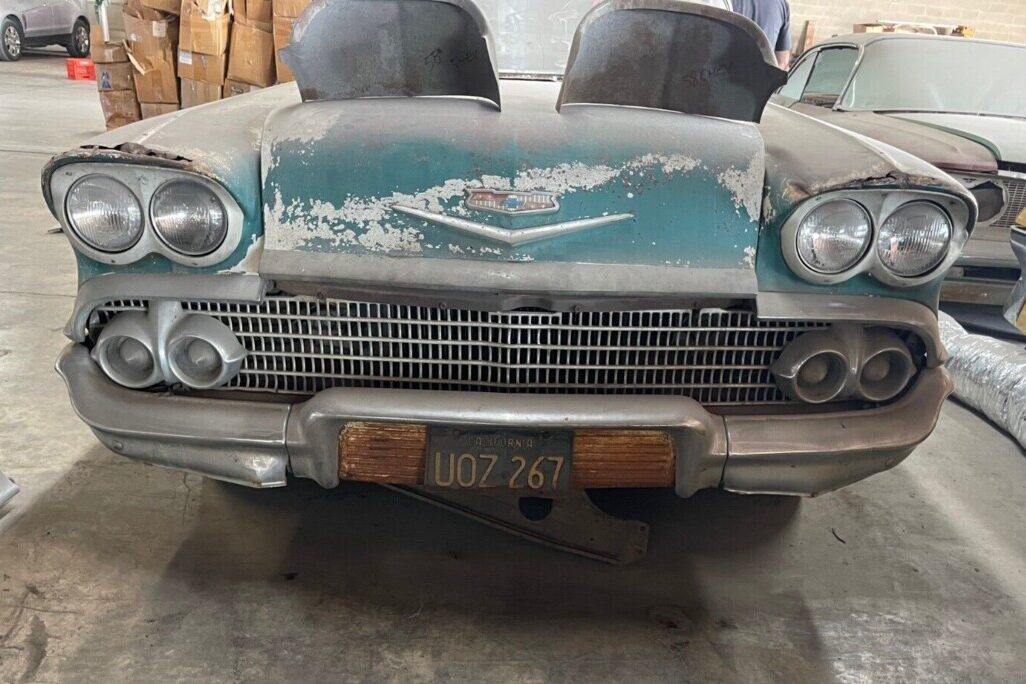 Chevrolet introduced the Impala in 1958 as the range-topping offering within its Bel Air range. It occupied that spot for one year before the company awarded it standalone model status. The seller purchased the car in 2005 with grand plans, but as often happens, the project stalled before it could start. It has remained stored indoors in the intervening years, with the seller indicating it last saw active duty with a previous owner in 1972. They are candid about its condition, stating it needs plenty of love to return to its best. The Turquoise paint gracing its panels may not be original because there are traces of Snowcrest White visible in several photos. The body carries sixty-four years of accumulated bumps and bruises, but the rust will occupy the new owner’s attention. The seller states the fenders are junk, as is the hood. The trunk lip is rotted, but the rockers and doors might be okay. The trunk pan is salvageable, but the state of the floors is unclear. It is worth noting that this beauty wears a set of black plates. That suggests it lived part of its life in California. If that’s the case, there may not be any significant rust problems beyond those mentioned requiring attention. The buyer will probably elect to follow the frame-off path, allowing them to address these shortcomings to a high standard. Some trim pieces are set for the scrapheap, others are missing, with the rest appearing restorable. Most of the glass is okay, although the windshield is cracked.