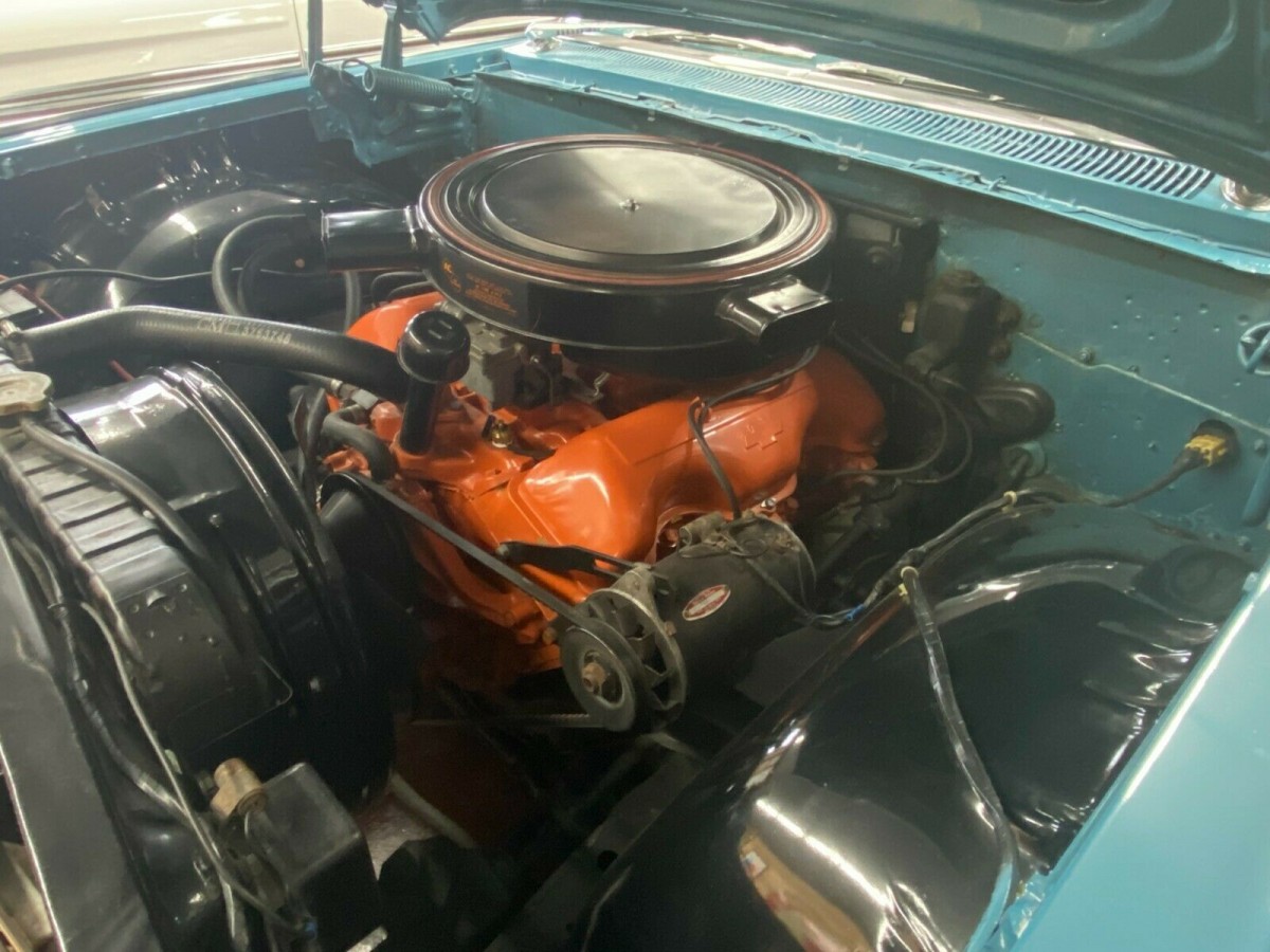 My brother bought a 283 powerglide version of this car in the mid-70’s. An elderly couple owned the car, and the car had damage on the panel under the rear bumper. In the trunk was a new panel, and a quart of GM turquois lacquer.