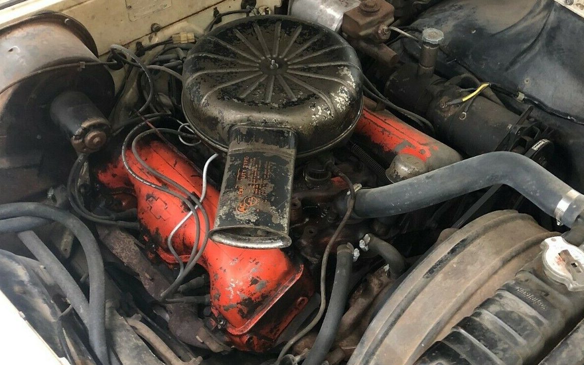 In the early 70’s I traded a ’58 Bel Air (no engine or trans) for a T.V. set. I came across a ’62 Impala wagon from New Mexico for $50.00. I removed the 327 and junked it. (I know… but wagons weren’t cool then) The 327 and an M-20 4-speed went into the ’58. That was a lot of fun, especially for the $ I had into it… I like this car… I’d give the entire car a gentle cleaning, remedy the transmission situation with a 4-speed, clean & detail the engine compartment and enjoy this overlooked beauty!