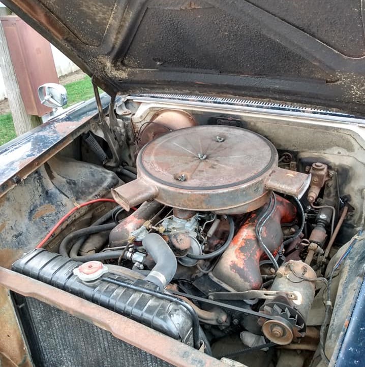 This car has a fender mounted accessory antenna, located in the wrong place. That leads me to conclude this car was ordered with only 2 options: the 348 V8 and a heater. No radio, No power steering or power brakes.