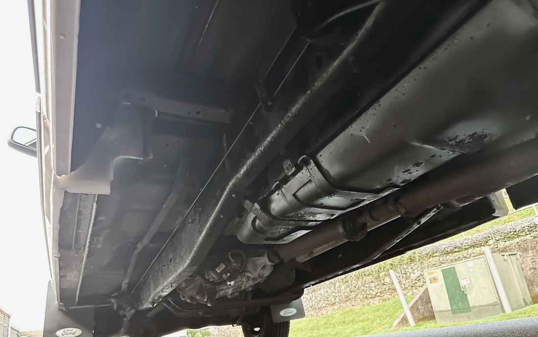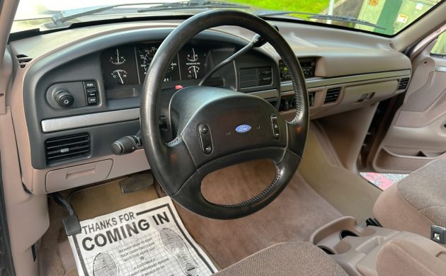 The dent in the tailgate panel seen above is the only flaw I see in this truck. I’m guessing a skilled owner could remove that and massage it out again. Or, replacements are available for $350-$400 or so. I’d try to fix it first… The ninth-generation F-Series was made from 1992 through 1997 here, and the SuperCab is a nice compromise between the regular cab and Crew Cab models. The underside has been coated, and hopefully it was to protect perfection rather than covering up any issues, but it’s always hard to tell.