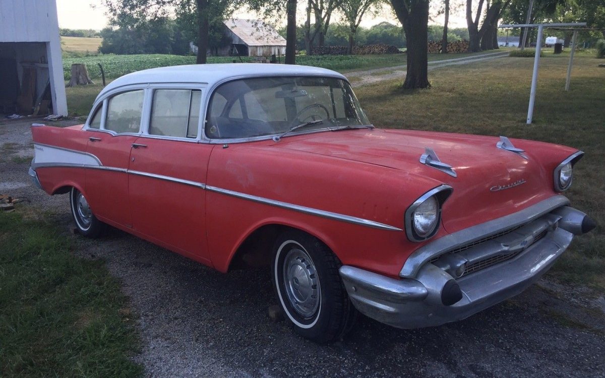 The ’57 Chevy is one of the most recognizable cars of all time. The ad lists this as a Bel Air/150/210, to me it looks like a 210 model and not a Bel Air. I believe one distinguishing feature of the Bel Air is the aluminum panel between the vertical trim on the quarters. This car is painted white in that area instead of having the trim, which should make it a 210; ’57 experts please chime in if this not correct.