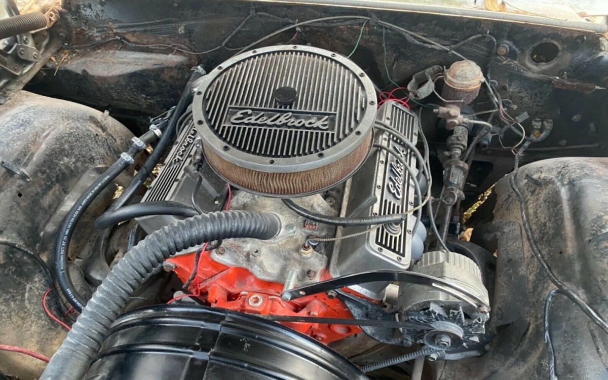 One thing that is not original to this car is the engine. Gone is the original motor, and under the hood now is a 350 cubic inch V8 which is said to run well. There’s also a manual transmission, but the car is currently not driveable due to the engine and tranny not being connected together. I’m certainly not the world’s greatest mechanic, but this doesn’t seem like a really major issue to contend with, and I’m not sure why the seller didn’t enlist the help of a friend and spend a weekend addressing it. But it is what it is and hopefully isn’t masking something bigger.