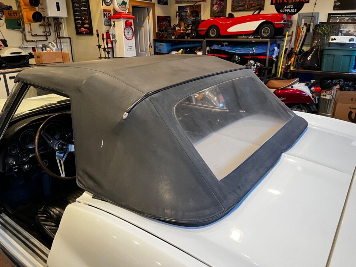The seller is candid about this Corvette’s condition, describing its Ermine White paint as driver-quality. It presents well, with a healthy shine and no evidence of significant paint or fiberglass problems. The Black soft-top fits as tight as a drum, with no tears or defects. Below the surface, the frame is solid, with no rust to cause concerns. Its chrome and trim appear perfect, and the glass is spotless. One of the frustrating weak points with these classics is the headlamp operation, but the recent installation of new motors has eliminated that problem. This Corvette rolls on a shiny set of American Racing Torq Thrust wheels which add a sense of purpose. If the buyer is contemplating any form of restoration, locating a set of correct wheels and hubcaps should not pose any drama. Otherwise, this classic’s exterior appears to need nothing.