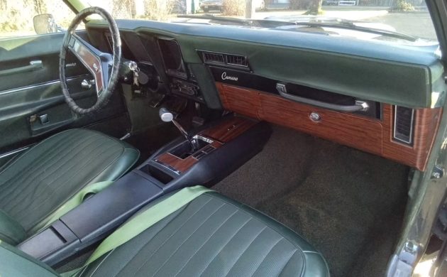 The 1969 model year marked the end of the line for Chevrolet’s First Generation Camaro, and while it hadn’t matched the sales volumes of the Ford Mustang, it had done enough to cement its spot in Chevrolet’s future model lineup. The first owner ordered this Camaro RS in Frost Green Metallic with a Dark Green vinyl top. They also specified factory spoilers and a Cowl Induction hood. It rolls on Rally wheels and also features a dealer-installed right-hand mirror. The car’s overall presentation is tidy, with the paint shining nicely, and the vinyl showing no evidence of distress. The trim is in good order, and the tinted glass is clear. However, there are a few shortcomings that deserve consideration. The distinctive headlamp doors are inoperative, with a vacuum leak thought to be the culprit. The seller also indicates that small rust spots are developing on the vinyl’s edge, but this is believed to be the only rust.
