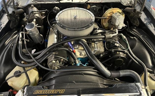 This Camaro’s interior continues the theme of spotless presentation, suggesting that it may also have received restoration. The Black vinyl looks perfect, as does the matching carpet. The dash and pad haven’t succumbed to UV damage or age, while there is no evidence of crumbling plastic. Aftermarket upgrades include a Digital gauge cluster and a radio/CD player that supplements the factory air conditioning and the tilt wheel.