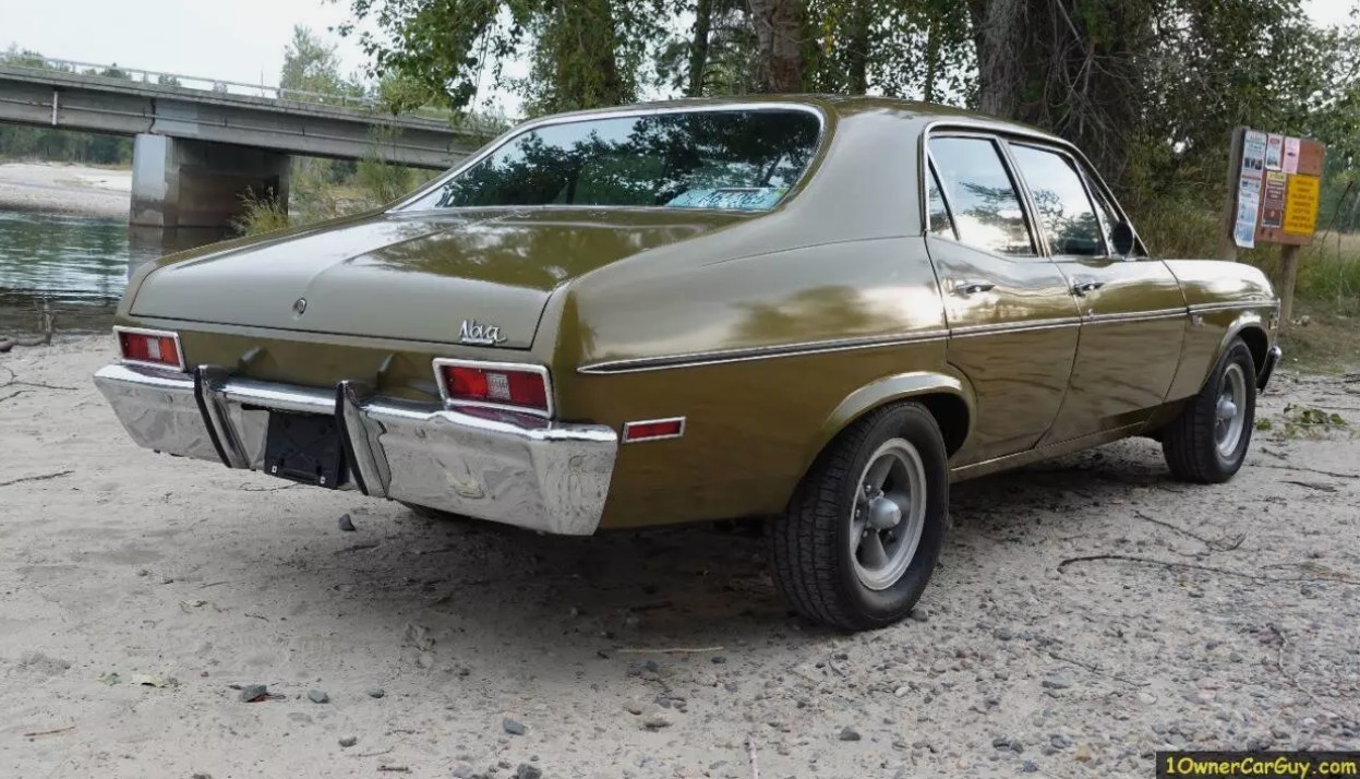 I like the original owner went for the 350/A/C, power steering but no disc brakes. I would add disc brakes and dual exhuast. The period correct rims are nice on this Nova but I would prefer Chevy rally wheels Other than that its a nice Nova even if it has 4 doors. Price could be lower!!