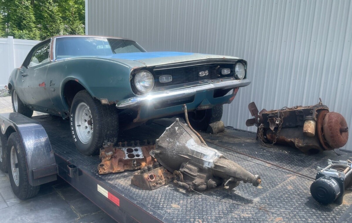 The seller retrieved this Camaro from a barn four years ago and has done little to it besides get a title and move it around to get at other projects. While the 350 with automatic transmission and 12-bolt rear end are said to be original, most of that stuff is out of the car and presumably complete and waiting to be rebuilt. The worst part here may be the undercarriage, which appears to have largely rusted away in places. For example, there is little left of the trunk floor or the gas tank. The seller says the Camaro will need “about every panel there is” or a donor body might be in order.