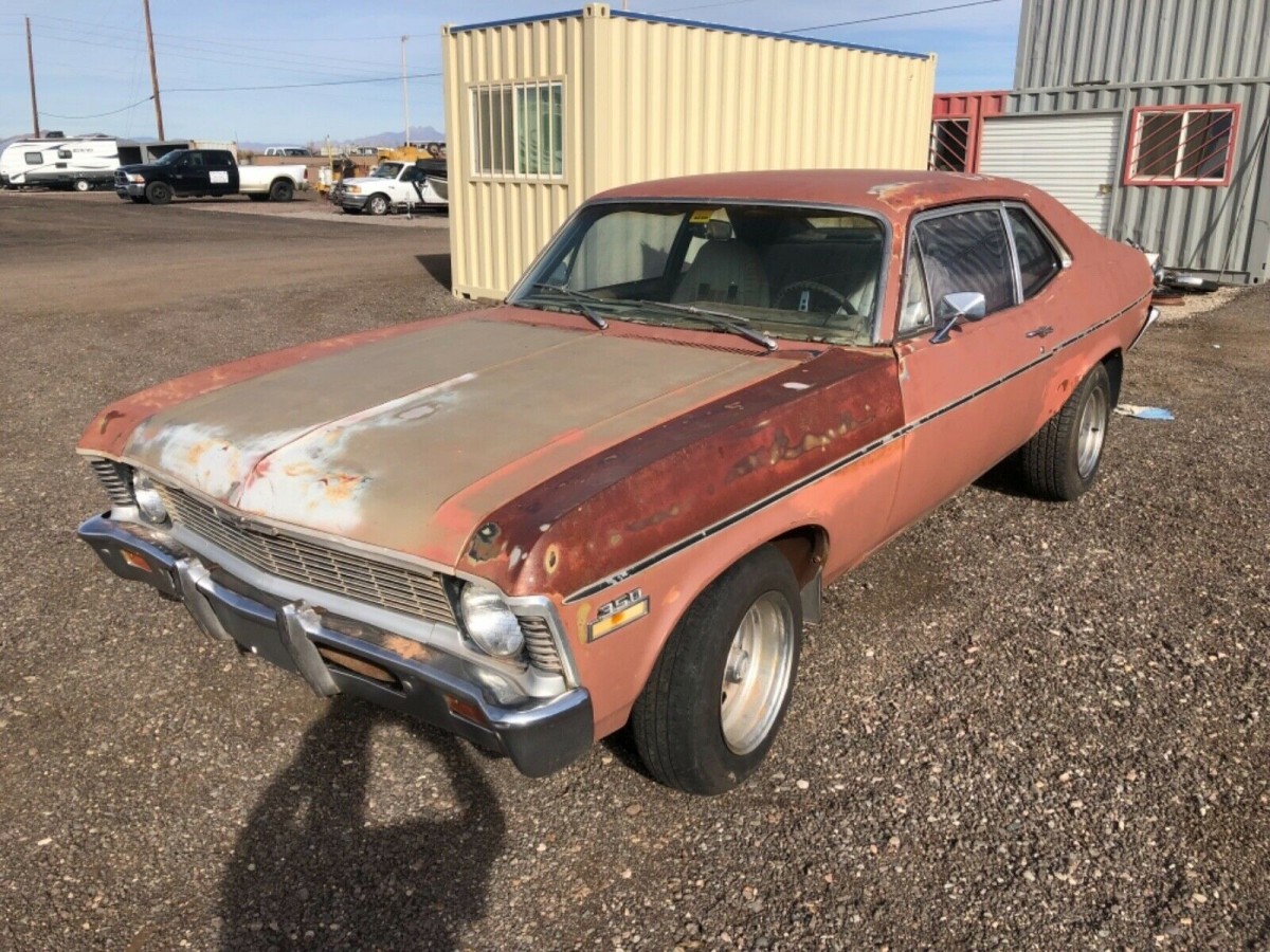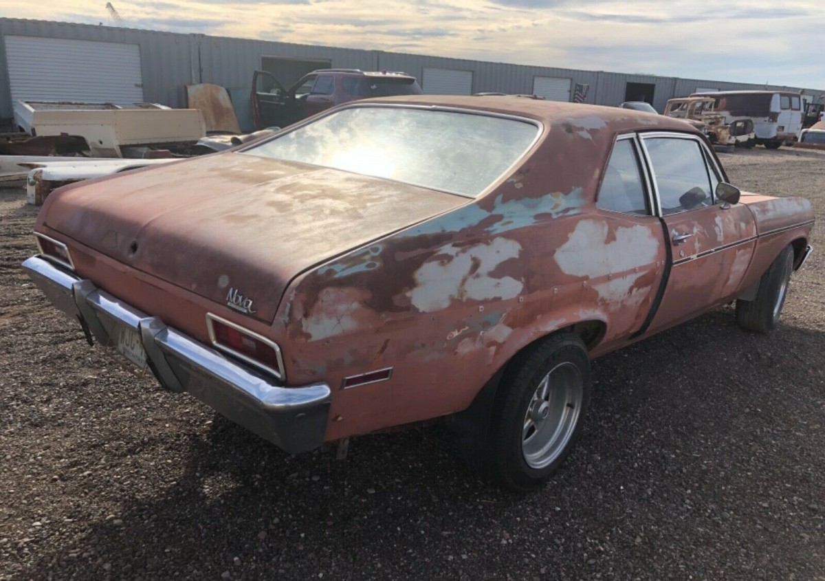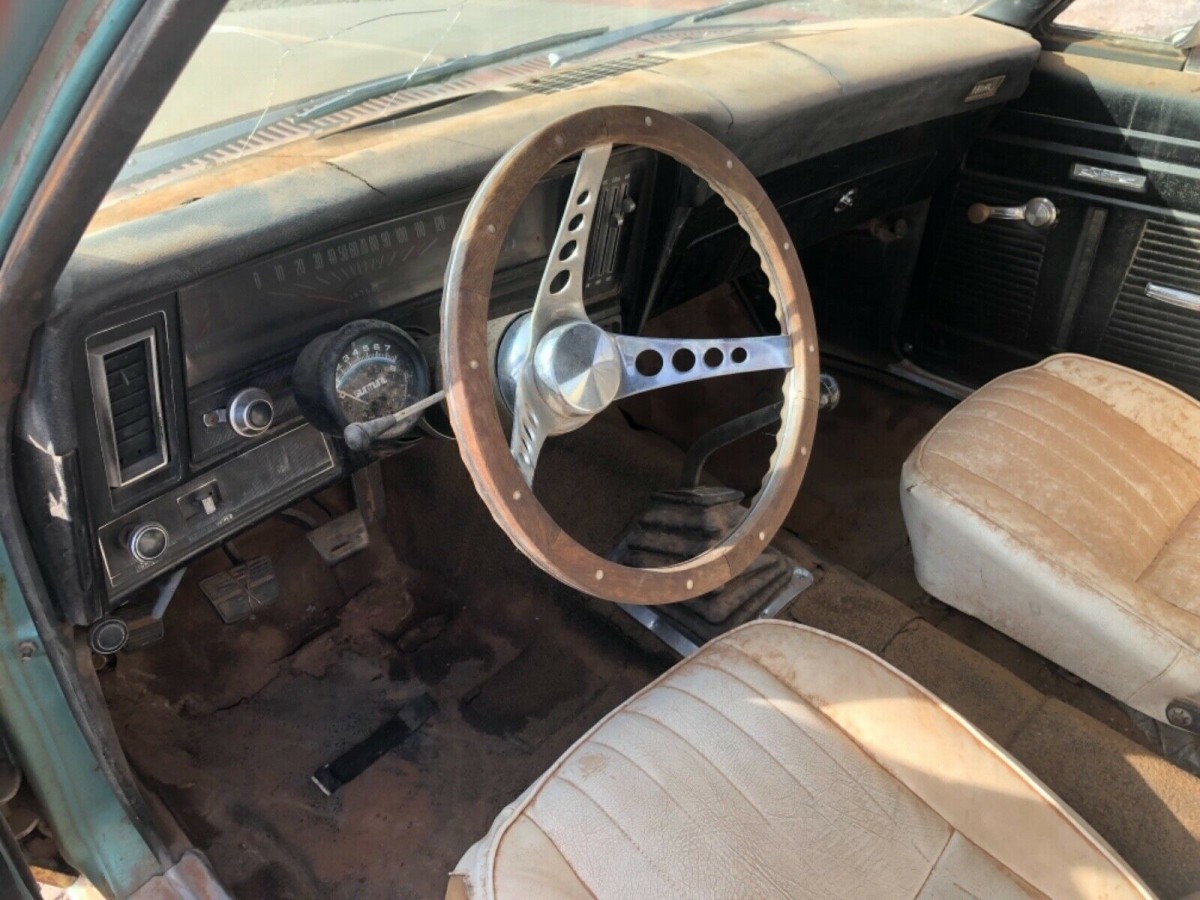 The Nova’s sales performance in ’70 was noteworthy not only because it was more than 50,000 units higher than the year before, but it had a full year of the Ford Maverick and the new Plymouth Duster, both fastback-style cars, to compete against. We’re told the seller’s car has little rust for being a Southwest desert car. The trunk pan and frame rails are solid, but the front floors will need some work as the glued-on rubber mats these Chevies came with retained moisture. It’s hard to tell what this Nova’s original color was because of all the primer and the cowl tag is hard to read, but it looks as though it might have been Misty Turquoise.