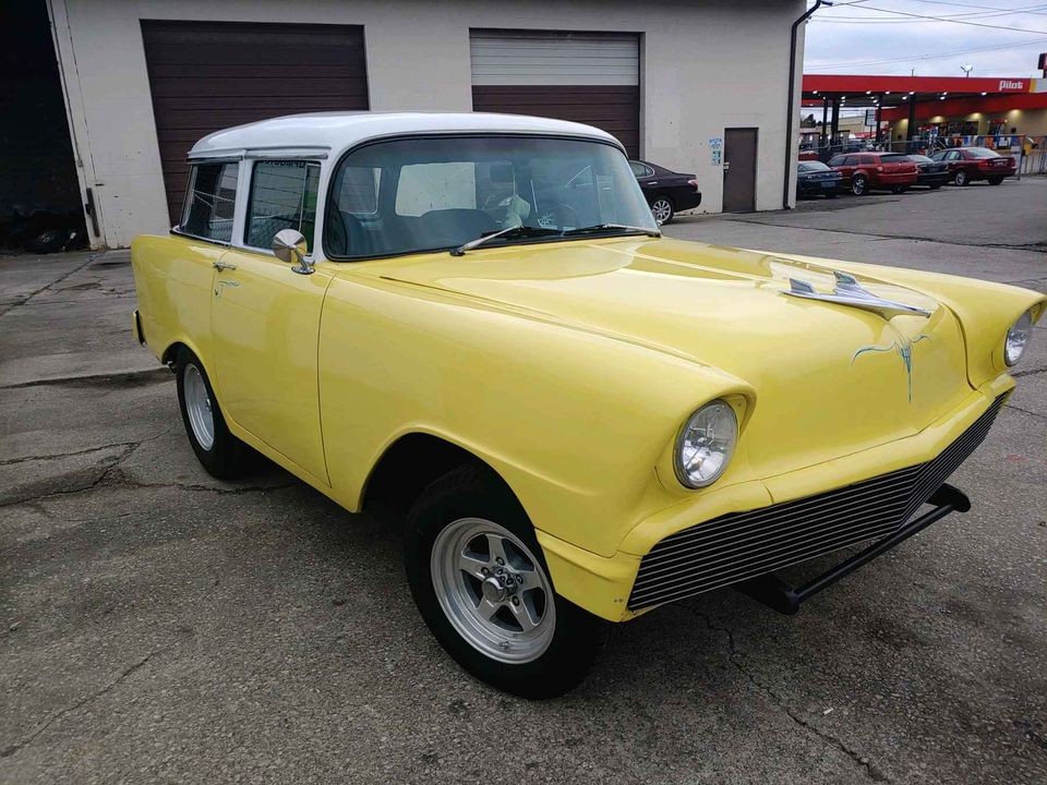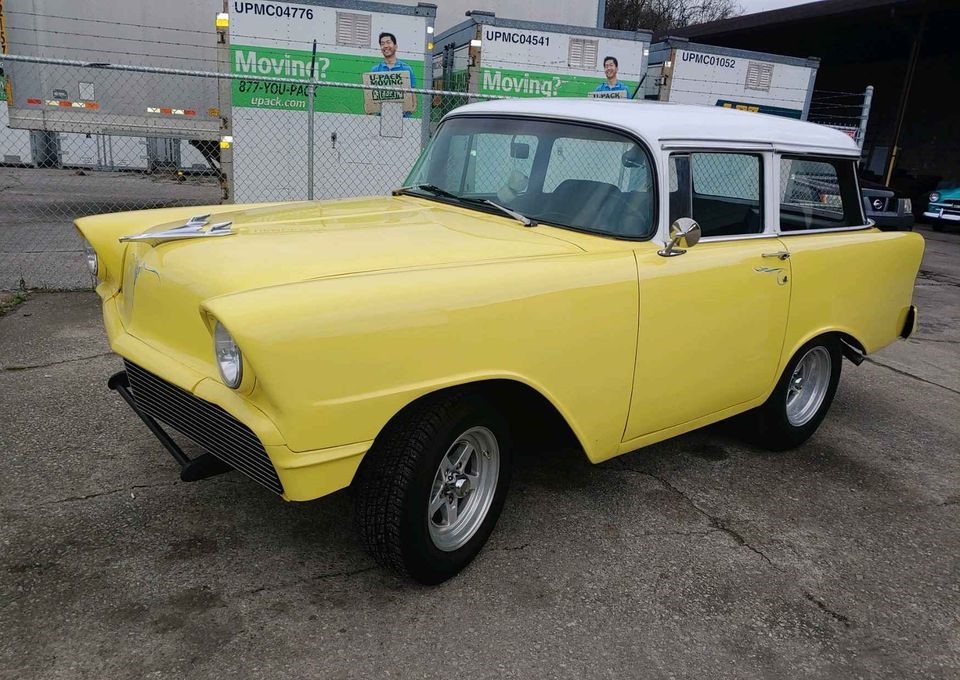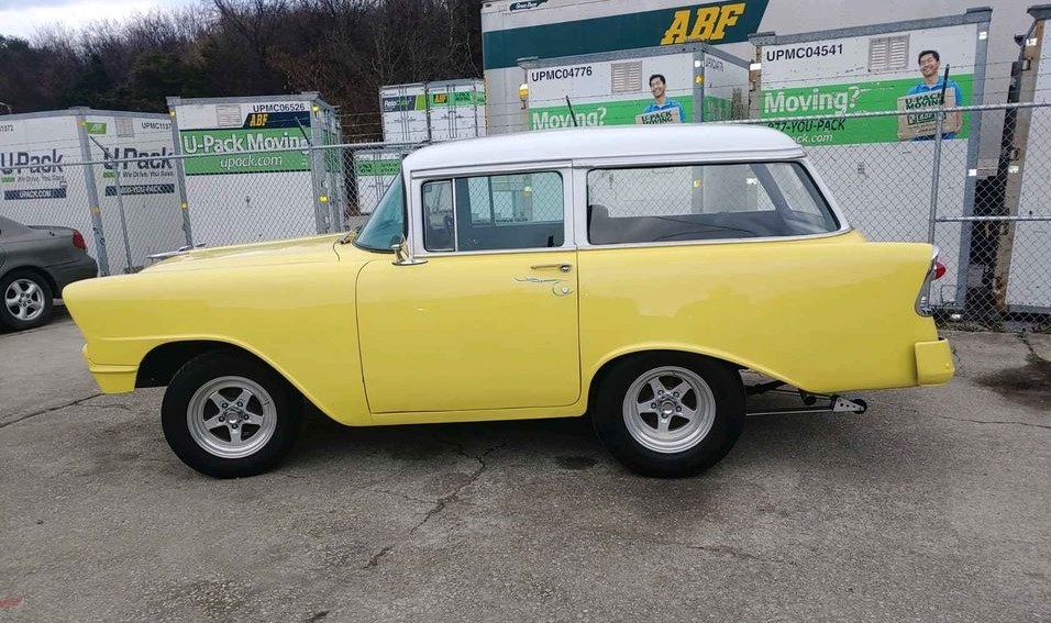 The Chevies were all new in 1955 and – over three years – more than 4.5 million cars were produced. If you assume that a 2-door wagon was the basis for this transformation, the field narrows to 18,500 150s and 29,500 210s built during 1956. There were no Bel Air wagons offered with two doors except the Nomad, which this surely was not.