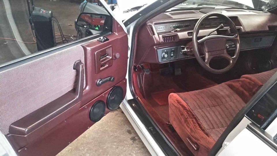Guy I rented from in N.Wis. had this car, only a V6, it was an awful car, but to be fair, it had a jillion miles. ’85 seemed to be the height of the electronic dash nightmares, and the warning lights blinked like a Christmas tree, nothing worked, never knew if it would start, finally, the rear axle rusted clear of the car, thank goodness. This one has me baffled. Why anyone would do this to this POS is just another example of the crazy world of classic cars. They lined these up at monster shows for a reason.