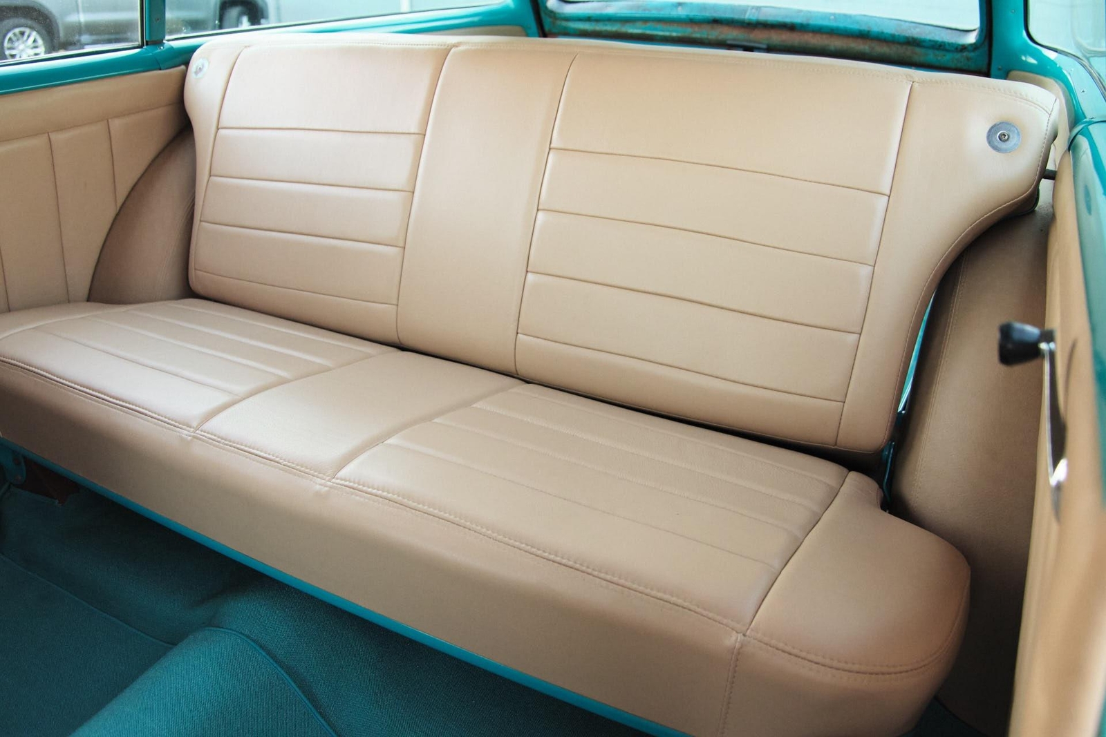I really wasn’t at all prepared for how much attention has been given to the interior. It looks downright beautiful in there! Those custom-sewn power bucket seats seem like their comfort would last for hours, and the back seat isn’t too shabby either. There’s a tilt-steering column and even air conditioning, so only inside is the one place in the car where the Jekyll mindset really shines through, except for the Hyde shifter. I’m really liking the contrasting personality of this one and thinking the next owner is going to have a really fun and unique ride here. What are your thoughts on this 1956 Chevrolet 210 Handyman Wagon?