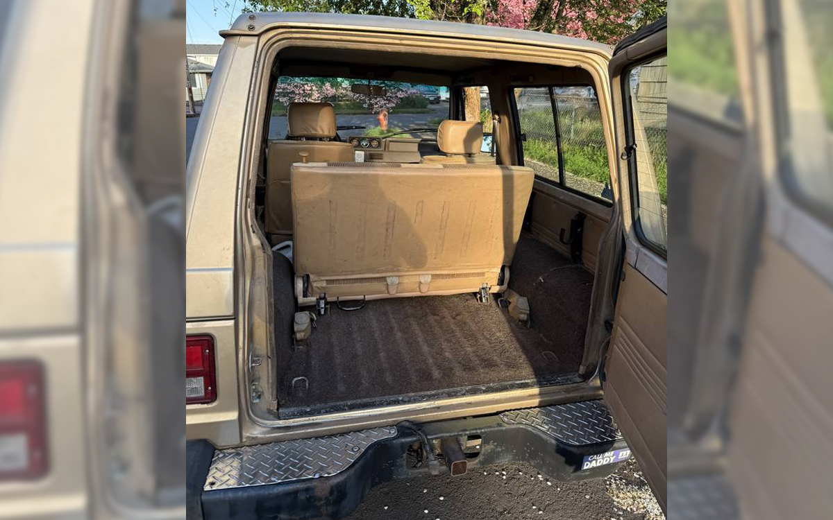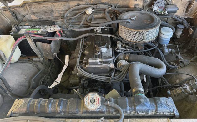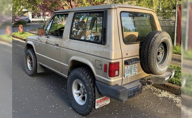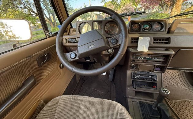 The interior is more plush than I imagined, but this model was made for posh-loving Americans who, by the late 1980s, were used to having nice things. I like the subdued colors of the exterior and interior; it helps this little 4WD rig blend in more than stand out. The seats look good, if not a little dirty in the front, and we don’t get to see the back seat. The seller says this is a West Coast survivor with no rust other than the usual surface rust, but it does ride a bit rough, as they all did – it’s a leaf spring truck. The five-speed manual makes it fun to drive.