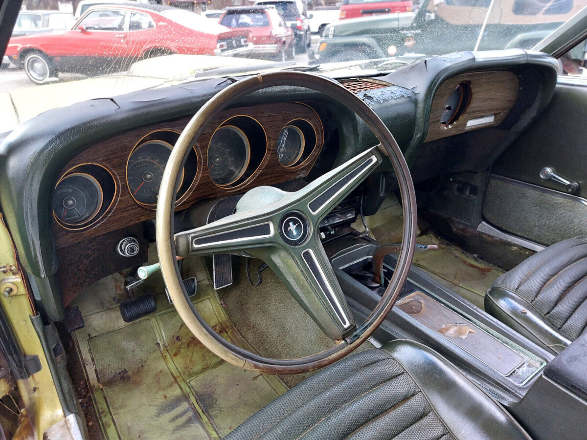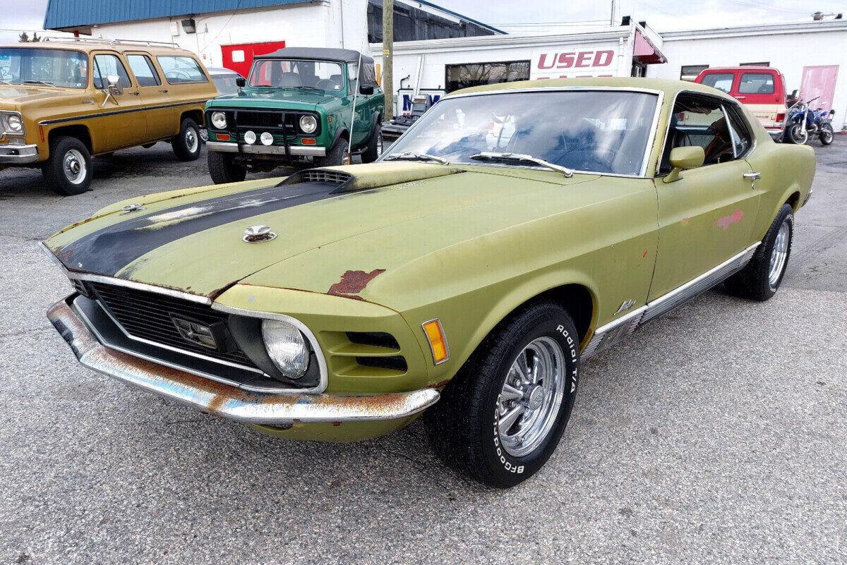 As usual, Ford offered 1970 Mustang buyers a broad range of paint shades to grace the panels of their latest purchase. This car’s original owner chose Medium Lime Metallic, and the sight of surface corrosion emerging from beneath it is the first indication that the buyer faces work returning this classic to its former glory. Externally, things don’t look too bad. There is minor penetration visible in a few lower extremities, and there may be some hiding under the lower trims, but there’s nothing that would defy well-crafted patches. The seller placed this Mach 1 on a lift so we can get a clear look at its floors. The news there isn’t as good, but this is by no means the worst Mustang we’ve ever seen. The floor pans have holes, but the significant deterioration around the torque boxes and front frame rails could be the most challenging issue. However, kits are available to help the buyer rid this car of the problems. The bumpers are corroded, but the remaining trim and glass may prove okay following a thorough cleaning. The wheels aren’t original, and whether they stay or go will depend on the buyer’s desire for originality.