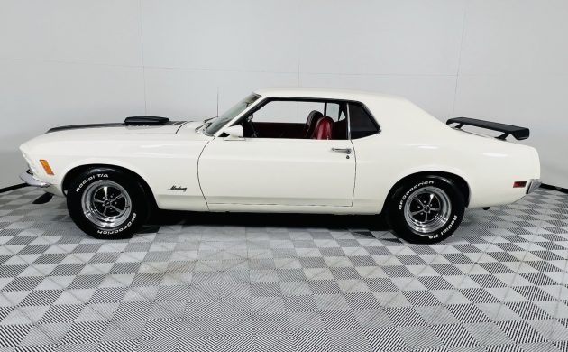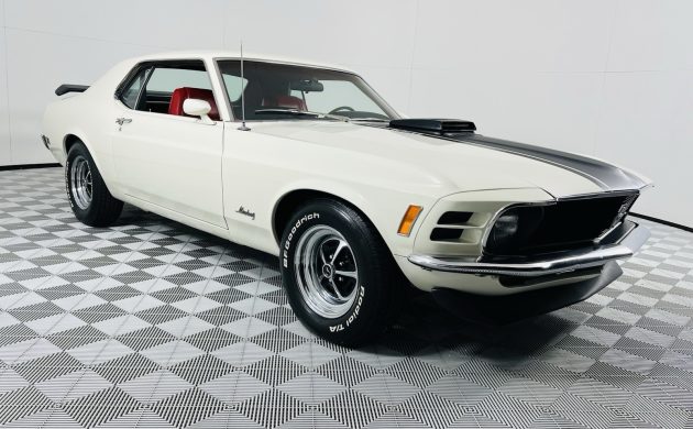 We see plenty of First Generation Mustangs at Barn Finds, and, interestingly, the Fastback variant is the dominant body style for cars produced after 1969. Therefore, this 1970 Hardtop is like a breath of fresh air. It also isn’t a Mach 1 or a Grande, with the first owner opting for a more “pedestrian” version finished in Wimbledon White. The seller provides no information surrounding its history, making it unclear whether it has undergone restoration or repairs. The included documentation indicates that the spoilers, hood stripe, and sparkling Magnum 500 wheels are later additions, although they are appropriate for a Mustang of this vintage. The car presents nicely, with no cosmetic issues or evidence of rust. The panels are straight, and the trim is in good condition. The seller ordered the vehicle with tinted glass, which is the first of many options we find as we dig beneath the surface.