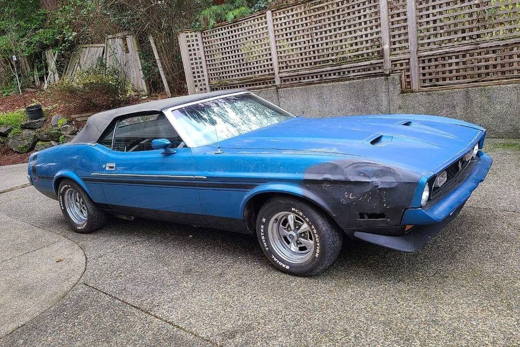 This is a great example to show consumers how not to spend money.. I am a 35Yr Classic Car dealer and friends and clients always ask me .. “What should I buy”.. I tell them find the best example of the car you want, projects are for builders and professionals. You can find a nice 71 Mustang convertible for approx. 15-20k, buying this one even at $10k would mean removing frame having it blasted and praying it is good (could have swiss cheese holes and you would need a new one)..then the brakes, the fuel system, electrical system the suspension .. then rebuild the engine all the hang on’s (alternator, water pump, starter, carb) headers or sand blast the exhaust manifold.. now that is just to get it to run safely.. once that is done then the hard part.. “Who is gonna do the body and paint”.. your looking at at least $10-20k in body and paint alone and that is not interior which is going to cost at least another $5-10k including a new top.. alas the wheels.. gonna need new tires and then the final touch the rubber and glass.. chrome ..your gonna be buried into this at least $50k.. and you will have a car worth $30-35 on a good day..Cheaper to find a nice car.