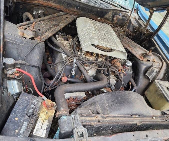 It looks pretty good on the surface and the price isn’t out of sight, but there is some hefty rust on the engine compartment pieces. Could be good, could be bad.