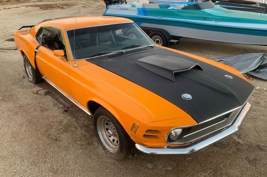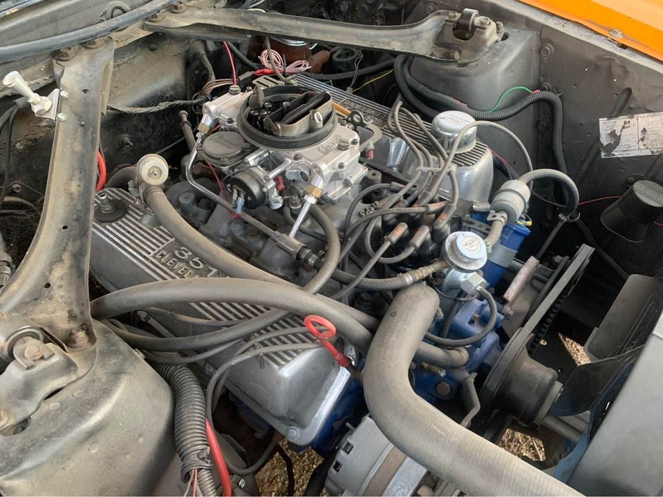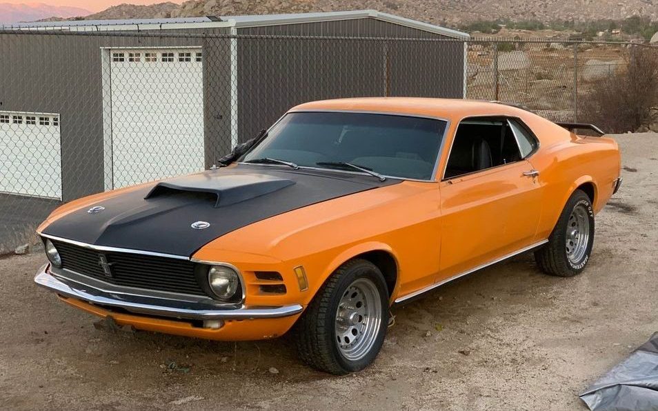 Nice ride, sure to grab a lot of attention in that orange paint job. Looks like a Boss 429 hood scoop, this is/was a fun cruiser with the intent on fun and only fun in driving,,, way before anyone cared about matching numbers this or that. Especially the Cleveland, it looks a little warmed up, again all about the smiles. I believe this pony has gone through several “changes” over the past decades.