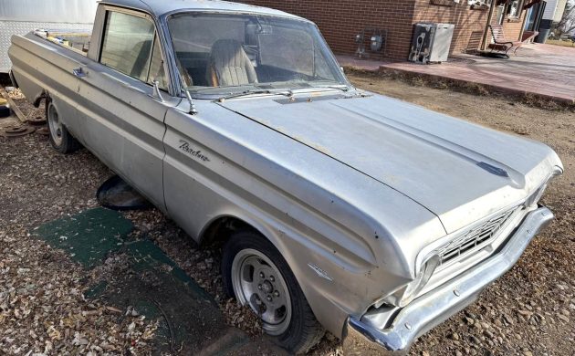 Since this Ranchero has five-lug wheels and front fender badges, it was surely built with a 260 or 289 cubic inch V8. But a 351 “Windsor” is there now, and it once sported a fair amount of bling along with a 4-barrel carb. A 4-speed manual probably replaced a 3-speed from 1964. The mileage is stuck at 72,000, but that’s because the odometer is broken. We don’t see much of the interior other than a pair of aftermarket or incorrect bucket seats, condition unknown. Is this a “Falcon” you would restore?