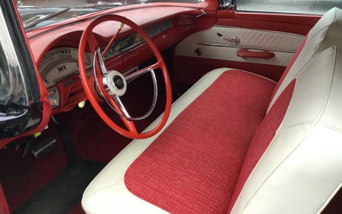 Things inside do not disappoint, with an excellent condition red and white interior. The seller says that this Skyliner has all the options, including air conditioning, town and country radio, power windows, padded dash, and fender skirts. Another option is the power seat, which is said to be working but needs a new switch. The windshield wipers were also recently converted from the troublesome old vacuum style to electric.