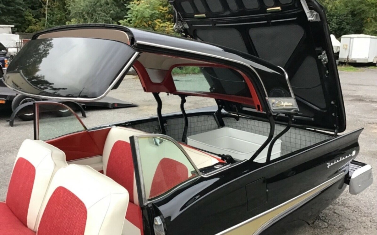 The 58 Skyliner was my favorite of the 3 model years. I owned two, at different times in the late 1960’s. Rust was a big issue here in northern Illinois. The top could be raised or lowered in the length of a stop light. It was a rare car by that time. I prefer no skirts or continental kit for a cleaner look.