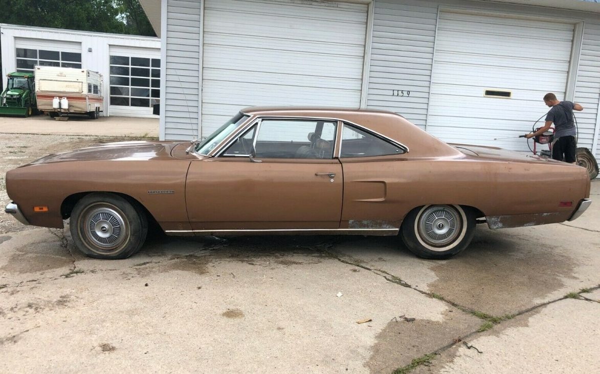A friend bought a 68 Dodge “White Hat Special” that was equipped about like this car except his had a radio, heater, full wheel covers, and a vinyl top. He paid $2500 for it at City Dodge in Decatur, Ga. If I needed/wanted this brown car I would restore it to original and drive it to a car show and park it in a line of RR’s, GTXs, and clones, and enjoy the comments.