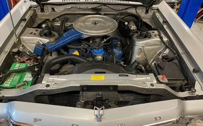The interior is beautiful in red with no visible flaws that I can see other than maybe some fading on the carpet. Sure, fabric bucket seats would be great as would a 4-speed manual, but it’s hard to argue with this one. The gear changes are accomplished by a 3-speed Ford C4 automatic transmission and column shifter. The seats look perfect and the faux wood dash does, too, as does the steering wheel. Is the steering wheel wearing an aftermarket wrap? The trunk also looks basically like new. This car shows 35,504 miles on the photo of the odometer and the seller has provided a driving video here on YouTube.