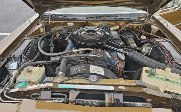 Other than some minor glitches on some trim and a few cosmetic things like that, I don’t see any scary flaws in this car. We don’t get to see the underside, but in looking at the detailed photos that the seller has provided, it looks like this Spanish Gold Metallic car is in outstanding condition. The ’77 and ’78 Newports received revised horizontal tail lights, and they may have zapped a bit of zing from the previous tail light treatment.