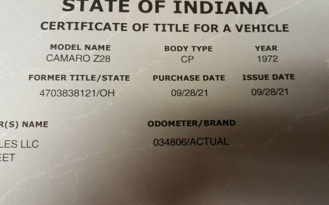 1972 Camaro front left
