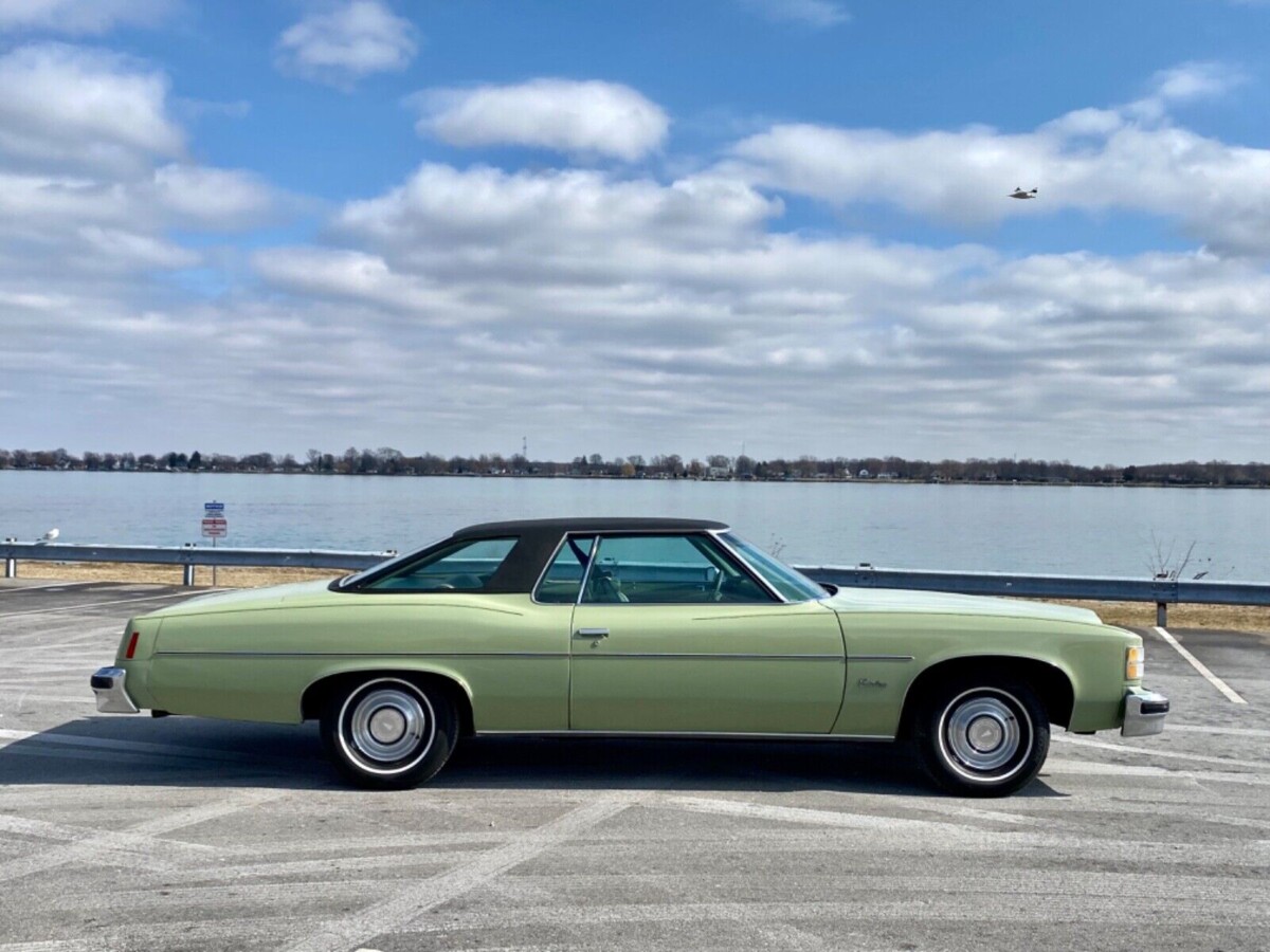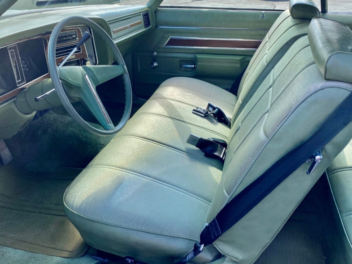 These were also Colonnade cars. I really like the preservation of the hardtop coupe with rear quarter glass that actually rolled down. Great period color of which GM had many that year. It’s all just right.