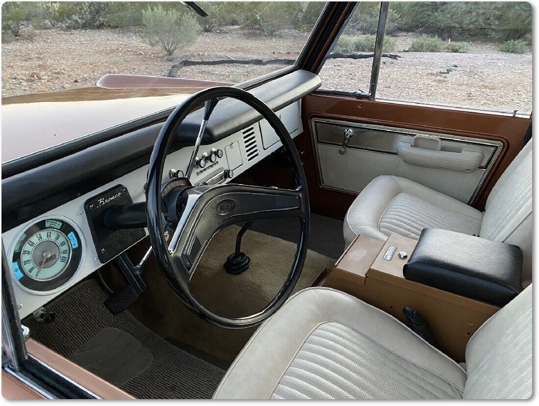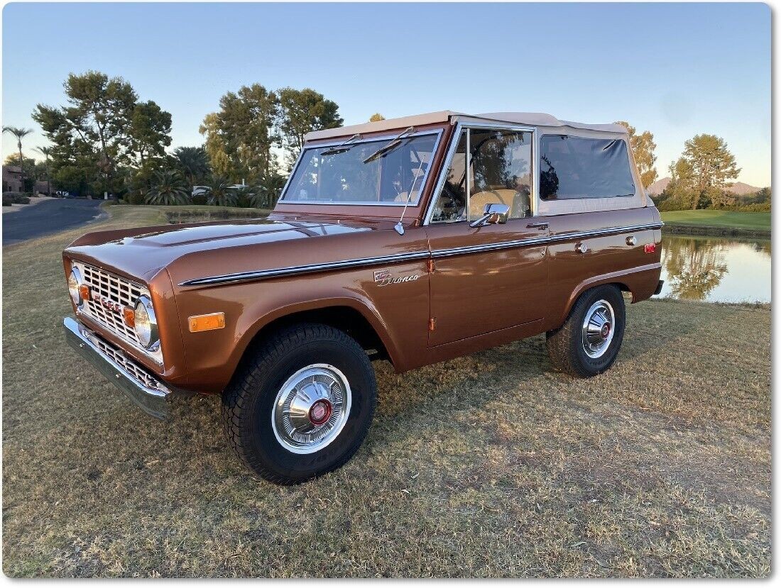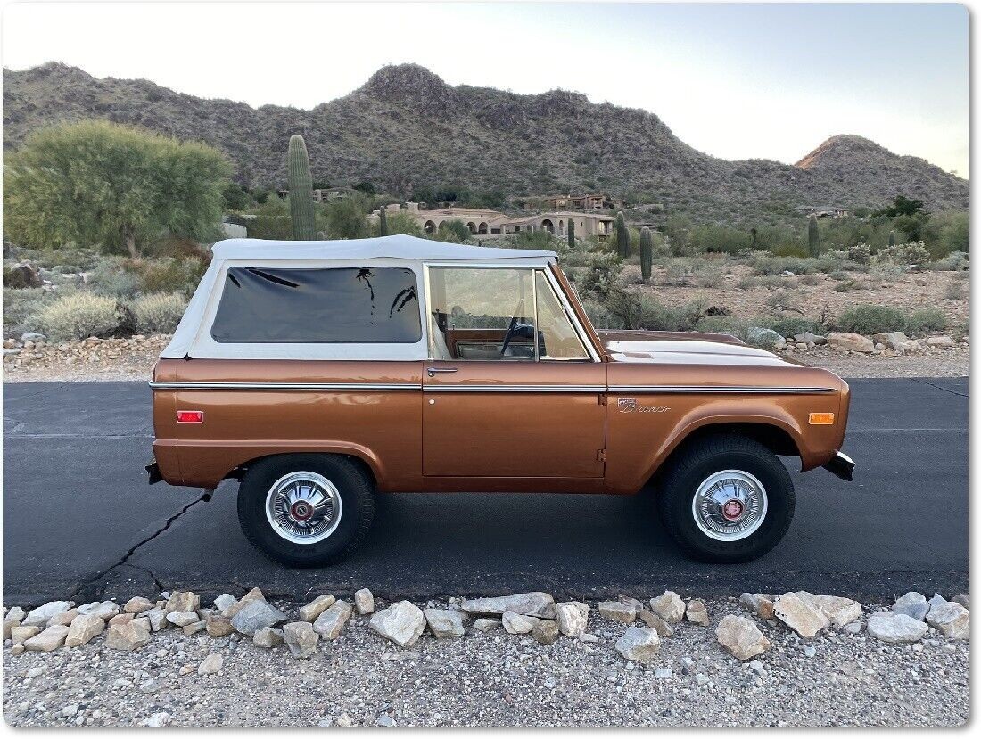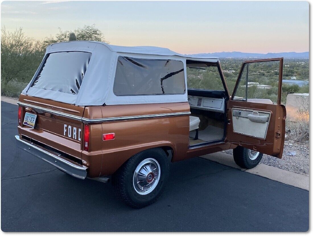 Apart from its sparkling Copper Metallic paint, the first thing I noticed about this Bronco is its Rampage soft-top. The seller also has the removable hardtop, giving the new owner a choice between wind-in-the-hair motoring and total weatherproofing and security. This classic presents superbly for its age, with no visible faults or issues. The paint is excellent, the panels are as straight as an arrow, and the underside shots seem to confirm that this beauty is rust-free. That is hardly surprising because the current location offers the type of dry climate that does an admirable job of protecting classic steel. It is refreshing that the Bronco retains its factory wheels and hubcaps, meaning nobody has cut the body to accommodate an upgrade. The glass is crystal clear, and the trim is exceptional.