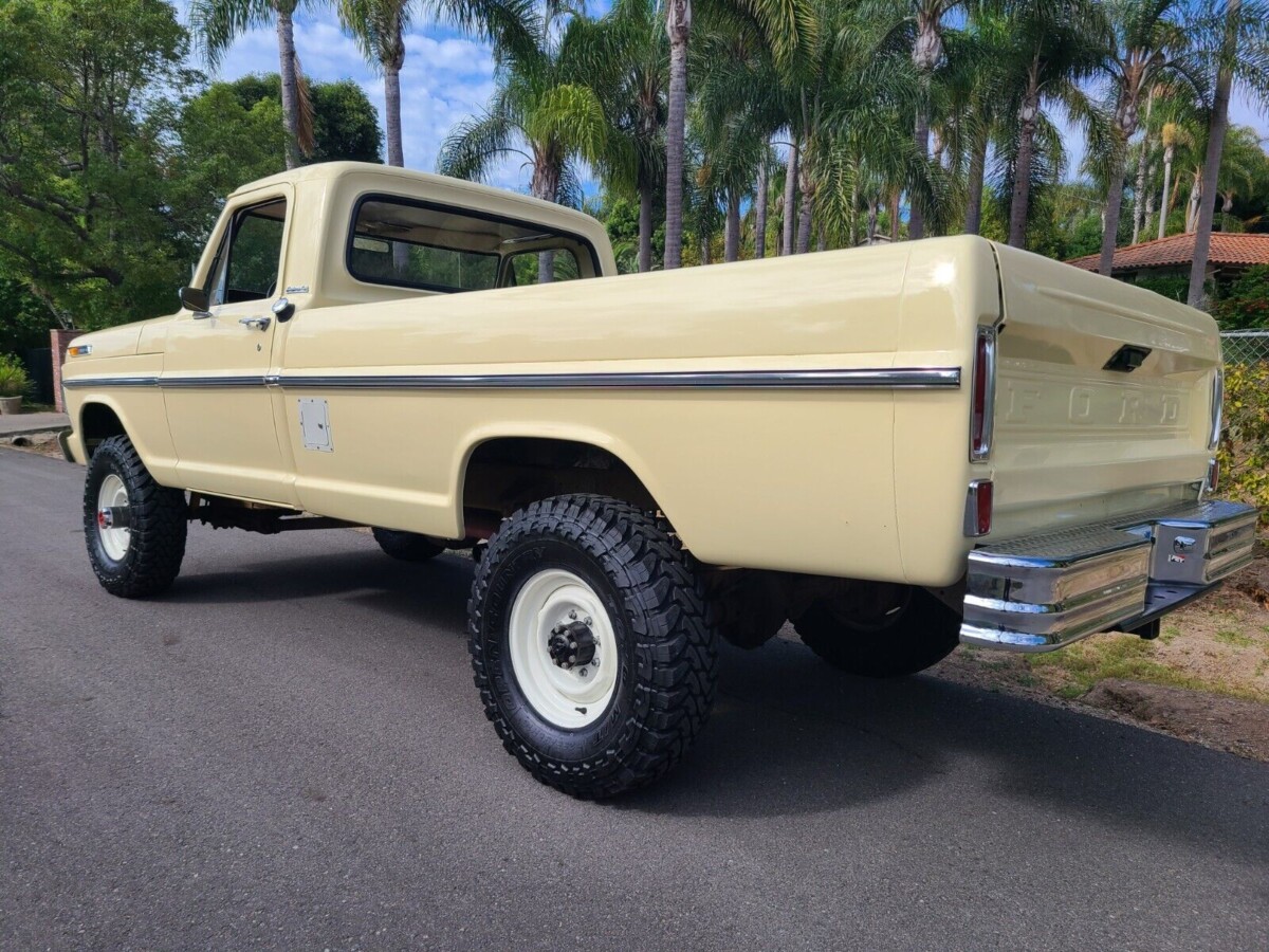 This F-250 presents beautifully in Morning Gold. The seller indicates that the paint isn’t show-quality, but the suggestions are it received a repaint that will still allow it to turn heads. There are no visible flaws or defects, and the panels are straight. It features a spray-on bedliner, but the lack of dings and dents in that area indicates the vehicle has never been abused or mistreated. It seems the F-250 has spent its life in dry climates, helping to explain its lack of rust. Prone areas like the lower cab corners and rockers are clean, with the seller stating that the floors and frame are rock-solid. The chrome looks fantastic for a vehicle of this type and age, and there are no glass issues. The Highboy rolls on new wheels and tires, and the modest lift kit should accentuate its off-road ability.