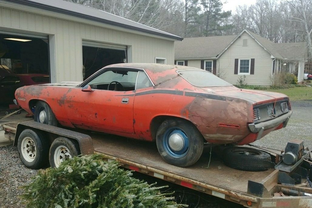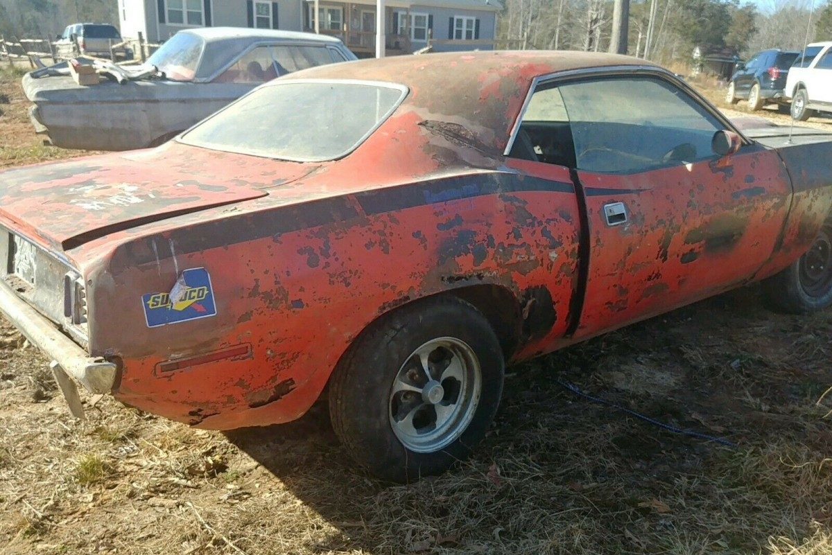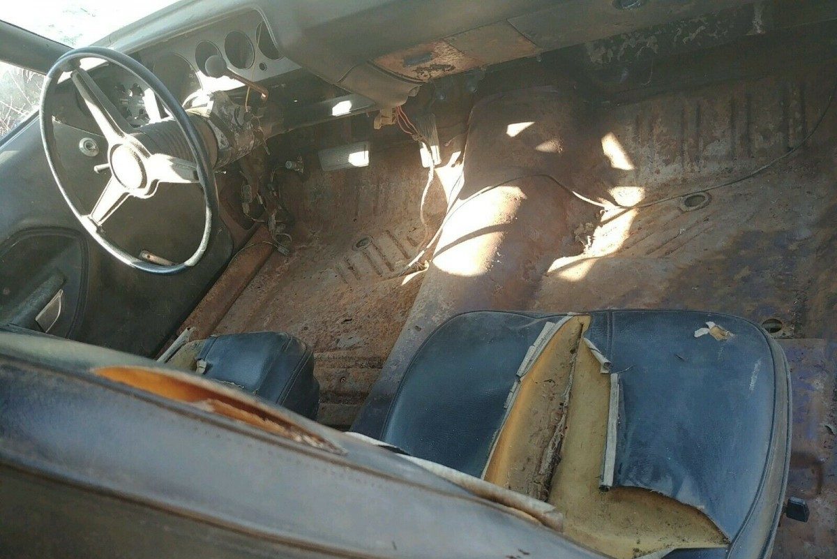 It seems that someone decided that this Plymouth needed to swap one premium color for another. It rolled off the line finished in Plum Crazy with a Black vinyl top. Both are a distant memory as the car has received a repaint in Hemi Orange at some point. The work quality is not great, and the best course of action for the next owner will almost certainly be to strip it and start again. There is also some Bondo that you can see in this quarter panel, and this looks like it was applied with a trowel. There is the usual rust in both rear quarter panels and around the back window, but the floors are surprisingly good. There are some thin spots, but these might clean up okay. The only other rust is s small area at the front of the driver’s side frame rail, along with another spot under the battery tray. When you consider the condition of some of the Barracuda project cars that we have seen in years past, this one holds a lot of promise.