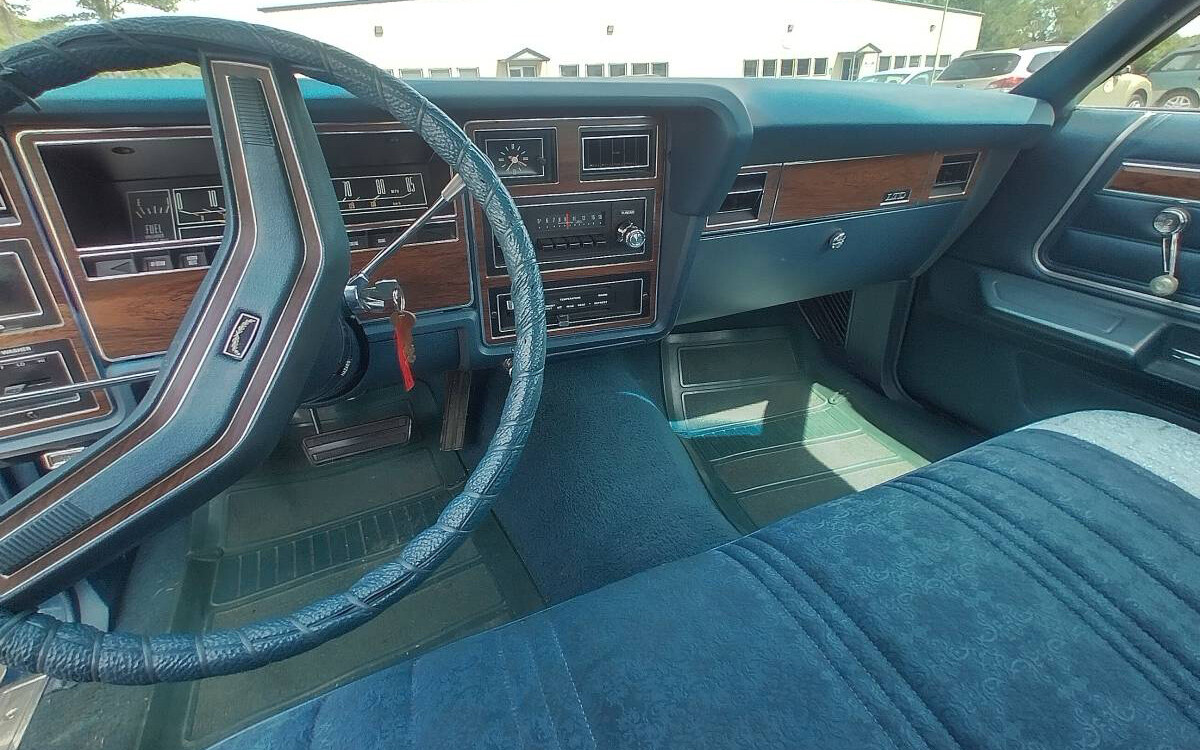 As expected, the interior appears to be as nice or nicer (if that’s possible) than the exterior. The beautiful Redondo fabric seats look like new both front and rear and as a base LTD, there doesn’t appear to be any power accessories, but there is air-conditioning and I’m guessing a perfect steering wheel under that wheel wrap. This car only has 36,000 miles on it so it hasn’t been driven too much over the decades.