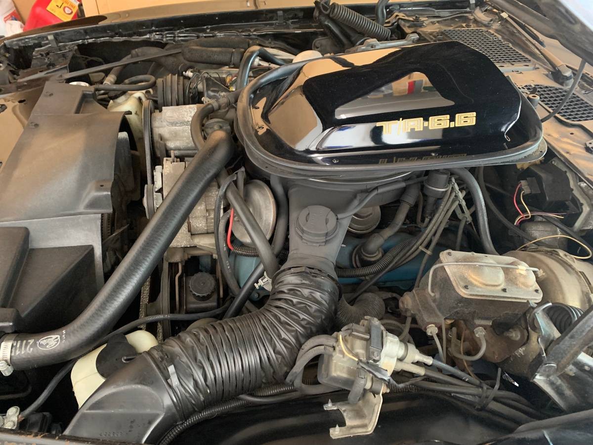 I owned a 79 TA like this one with the Pontiac motor. As you can see from the engine photo, the Olds motor had painted valve covers: the Pontiac motor had chrome factory valve covers. I bought it new, & only kept it for 1 year: only put a 1,000 miles on it, but could it go. I followed 2 other TAs through the Fort Pitt tunnel & up Greentree hill in Pittsburgh at 125 MPH. I made a mistake when I got rid of this black 4 speed beauty. I sold it to a teacher in McKeesport, Pa. I wish I could find it again: Happy Motoring.