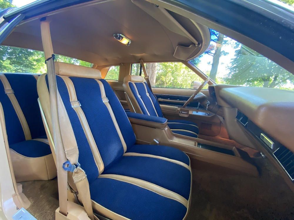 There is no other word to describe this Cougar’s interior than spotless. I scoured the supplied photos searching for faults, and it took me some time to strike gold. A tiny piece of faux woodgrain trim is missing from above the radio, but that appears to be about it. The interior is trimmed in a combination of Midnight Blue and Chamois cloth and vinyl, and all of the upholstered surfaces seem to be faultless. There is no evidence of wear or stains and no rips or tears. The plastic trim hasn’t deteriorated, the dash and pad are in good order, while the carpet and headliner look factory fresh. The options list for the ’78 Cougar was as long as your arm, and the original owner chose some good ones without going over the top. It comes equipped with air conditioning, a comprehensive gauge cluster including a factory tach, cruise control, remote exterior mirrors, a tilt wheel, and an AM/FM radio/8-track player.