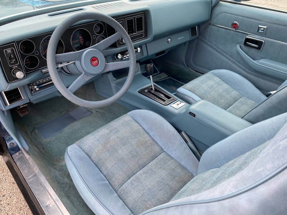 Before we delve too deeply into this Camaro’s condition and history, I think it’s best to address the elephant in the room. The car didn’t roll off the line wearing the existing “turbine” wheels and new tires. These are a later addition, but for purists, the seller’s inclusion of the color-coded factory wheels and original tires is a bonus. Beyond that, this classic appears unmolested. The seller indicates it recently emerged from a private collection, and its overall condition is impressive. Its Dark Blue paint shines nicely and is offset by the two-tone Blue graphics that look crisp and clean. The panels are straight, with tight and consistent gaps. There are no visible bumps or marks and no evidence of rust. The aerodynamic additions are free from damage, and the tinted glass is spotless.